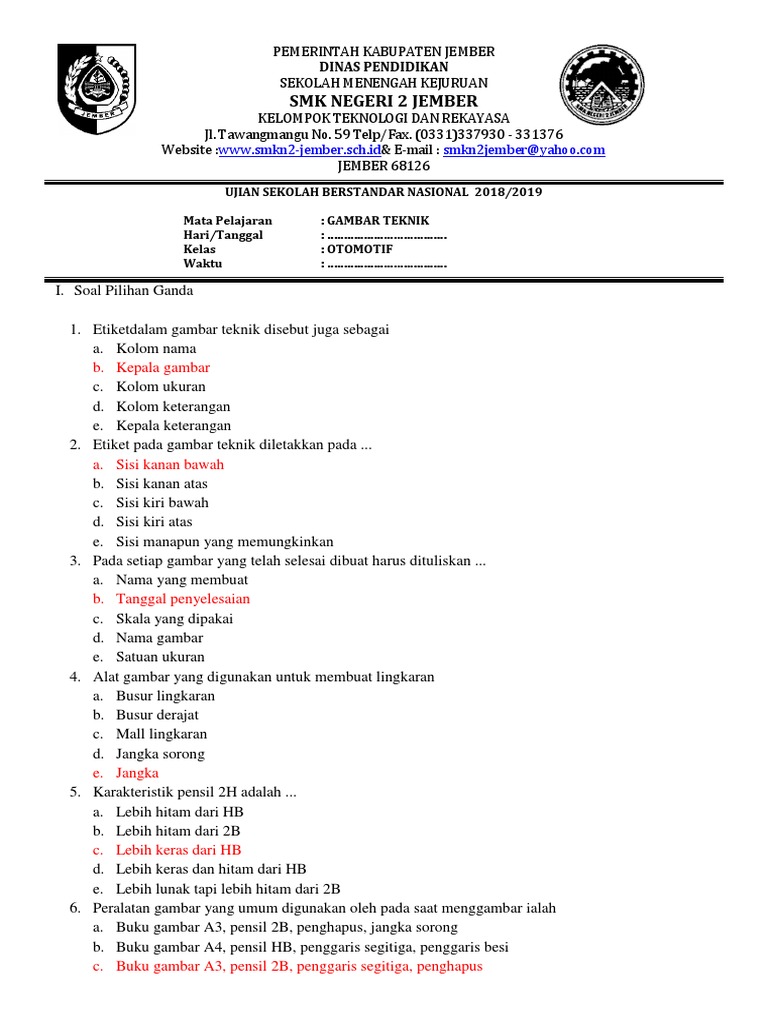 Contoh Soal Pilihan Ganda Gambar Teknik Dan Jawabannya - Tempat Berbagi Gambar