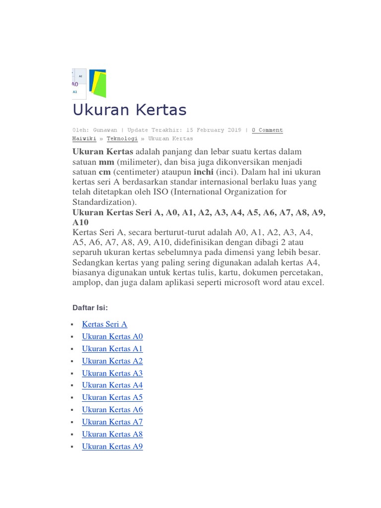 Ukuran Kertas: Ukuran Kertas adalah panjang dan lebar suatu kertas dalam