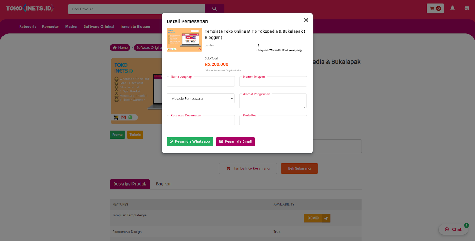 Template Toko Online Blogspot Tanpa Shopping Cart, Order Ke WhatsApp