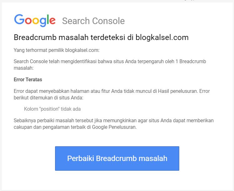 Cara Perbaiki Permasalahan Data Terstruktur Template Blogger Breadcrumb Kolom Position | Blog Kalsel - Sajikan Informasi Akurat Inovatif