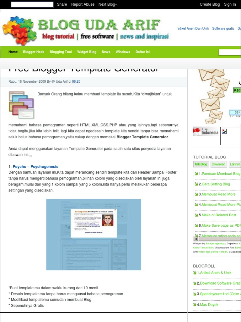 Free Blogger Template Generator: Blogger Hack Blogging Tool Widget Blog News Windows Daftar isi