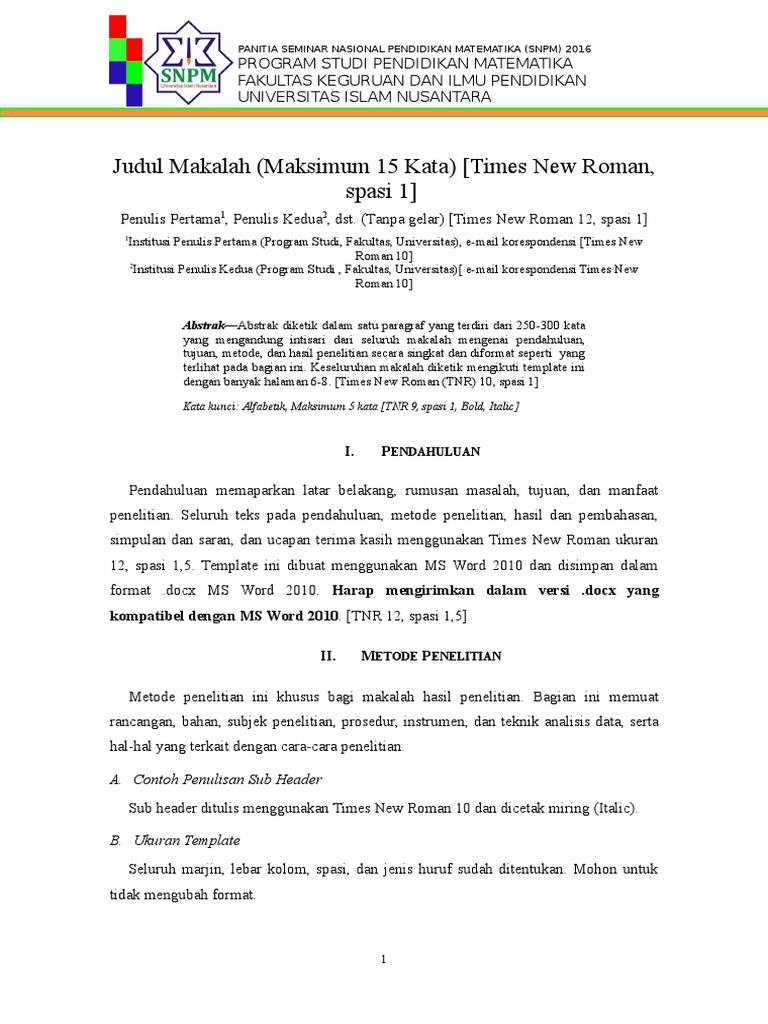 DOC) TEMPLATE PENULISAN TUGAS MAKALAH BAHASA INDONESIA ILMIAH | Yonathan Therigan - Academia.edu