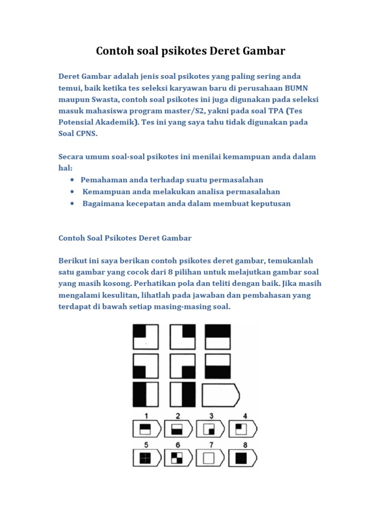 Contoh soal psikotes Deret Gambar - ? · Contoh soal psikotes Deret Gambar … mengalami kesulitan, lihatlah pada jawaban dan pembahasan yang terdapat di bawah setiap masing-masing - [PDF Document]