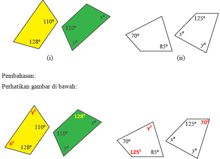 pasanagan bangun berikut adalah kongruen, tentukan unsur-unsurnya yang belum diketahui - Brainly.co.id