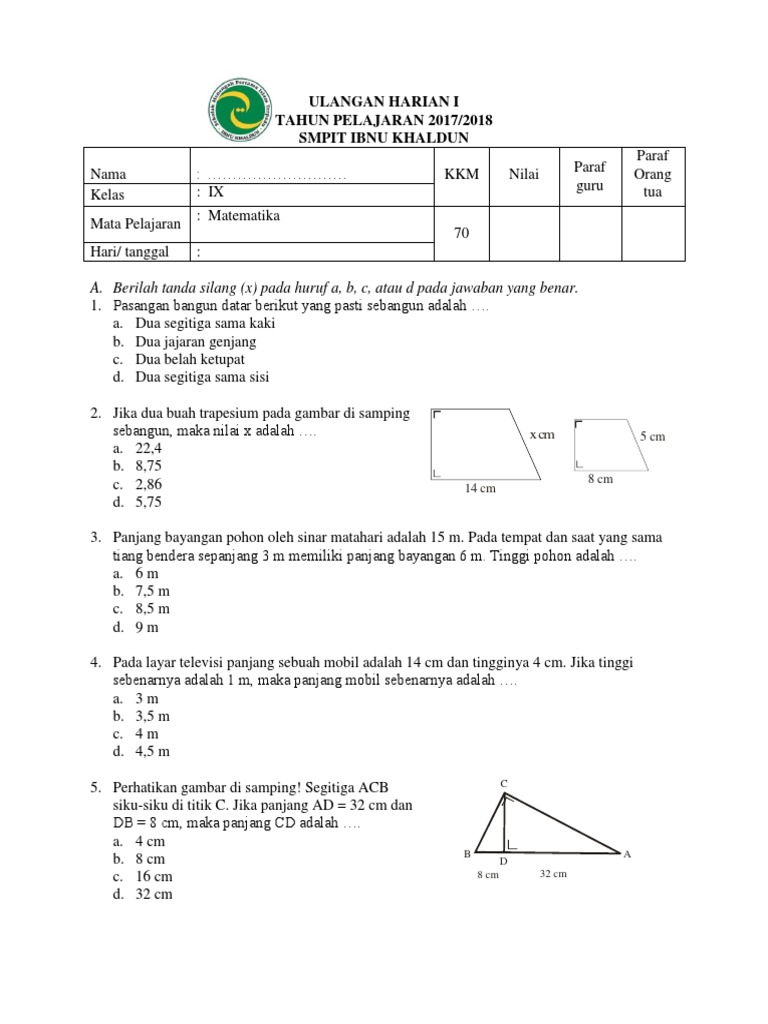 PDF) Latihan Soal Kelas IX: Kesebangunan dan Kekongruenan | fauzan asyidik - Academia.edu