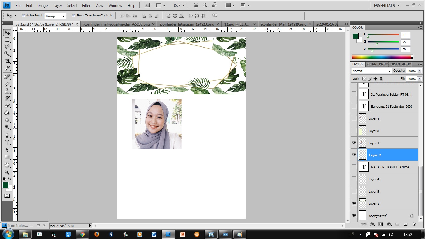 MEMBUAT CV - Photoshop Tutorial (Nazar Rizkani Tsaniya 1800569 No.8)