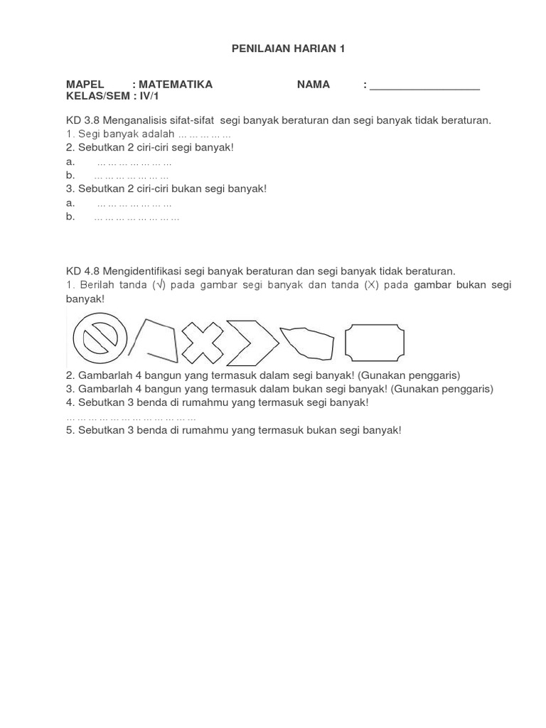 Latihan Soal Matematika Segi Banyak Kelas 4 Sd - Guru Ilmu Sosial