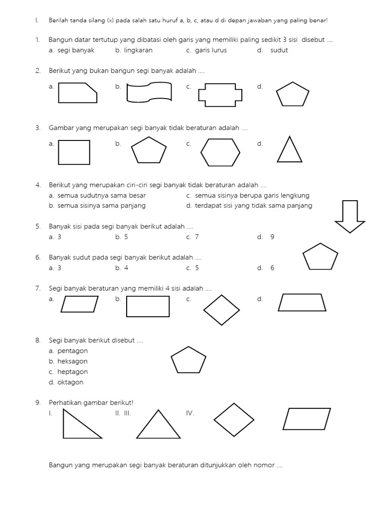 Soal Ulangan Segi Banyak Kelas 4 SD Beserta Kunci Jawaban - isanggar