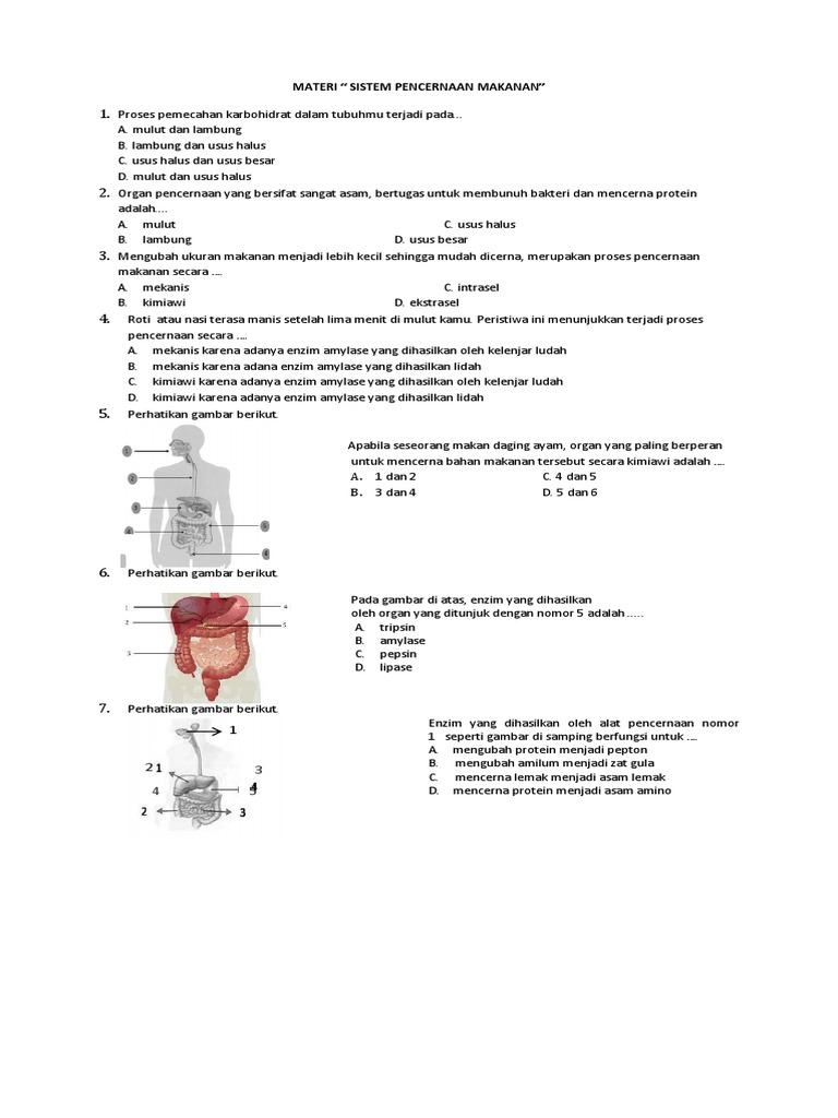 Soal SD kelas 5 Materi Sistem Pencernaan - blog kumpulan soal ulangan