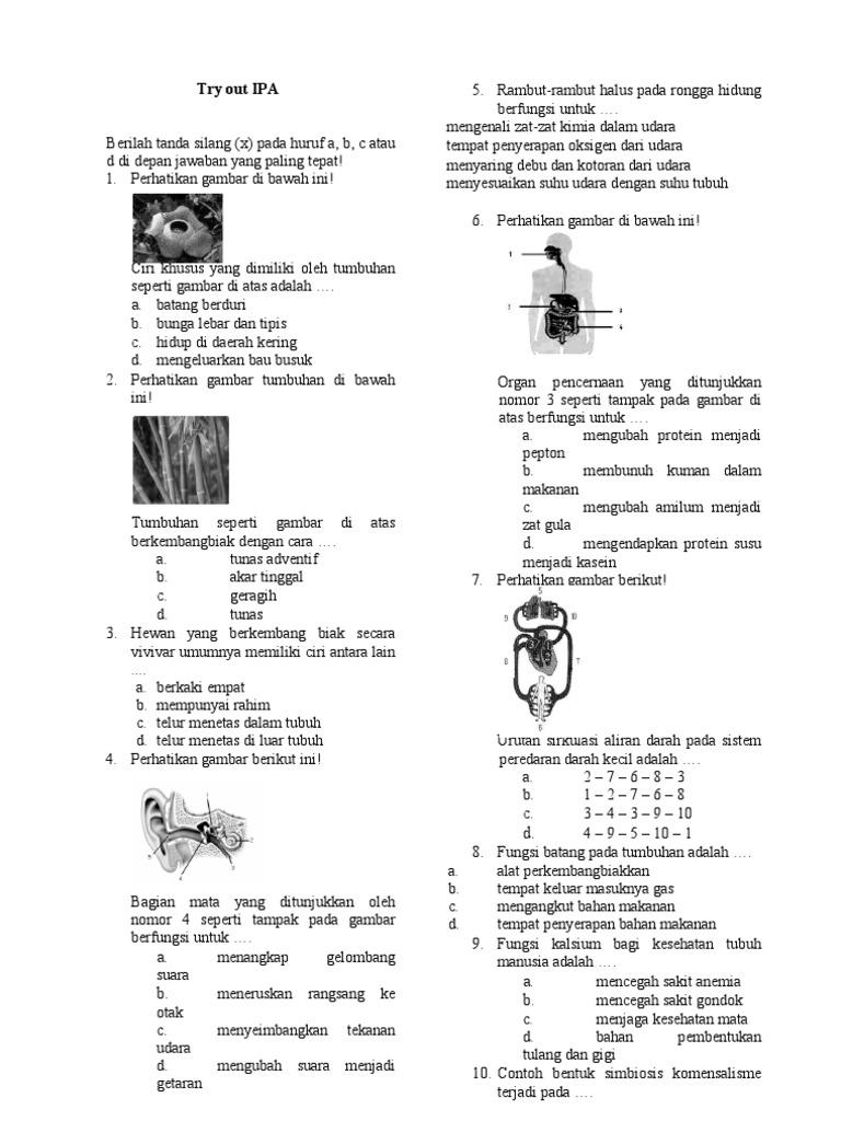 Soal try out UN IPA SD Muhammadiyah Banjaran Tahun 2012 Paket