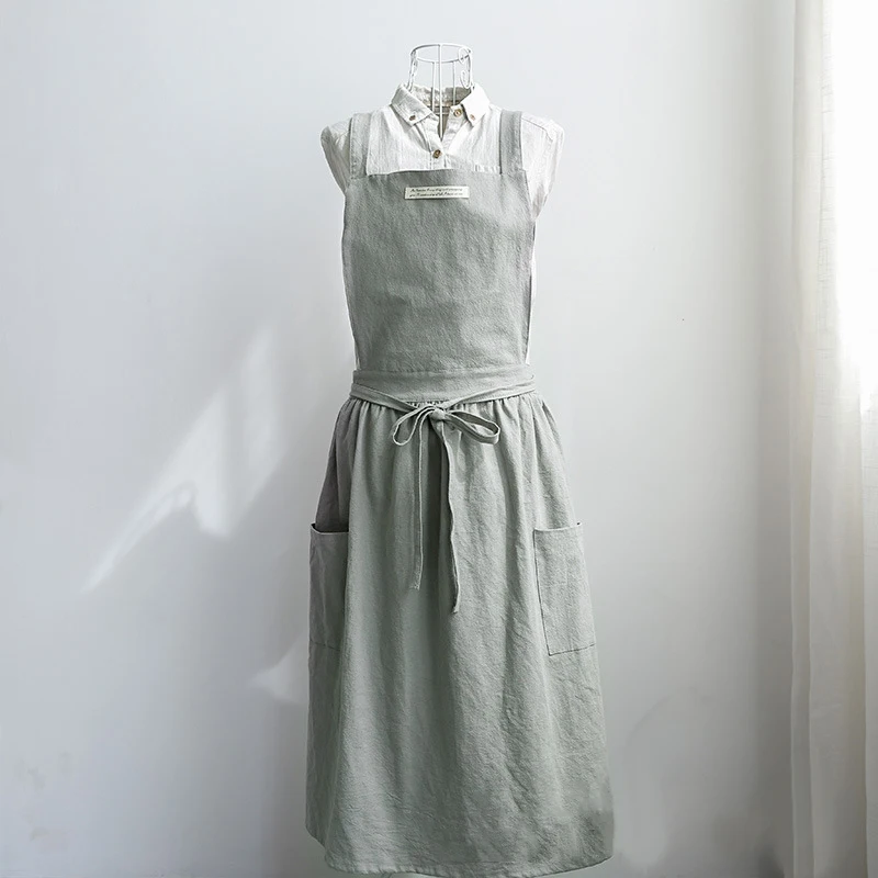 Retro Japanese Cotton Linen Apron Casual Craft Cooking Coffee Shop Workwear | Shopee Singapore