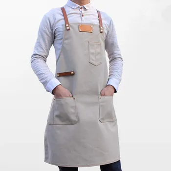 Khaki Gray Canvas Apron Leather Strap Barista Bartender Baker Chef Waitstaff Uniform Hairdresser Barber Florist Work Wear E28 Cooking Apron Chef Apron From Blithenice, $54.49| DHgate.Com