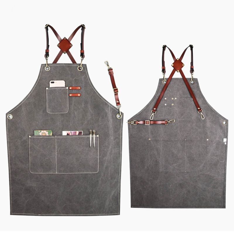 China Adjustable Waxed Canvas Barista Apron Custom Leather Apron - China Waxed Canvas Apron and Barista Apron price