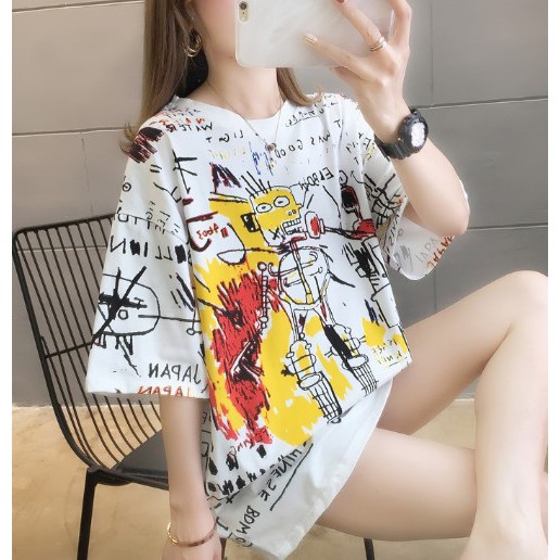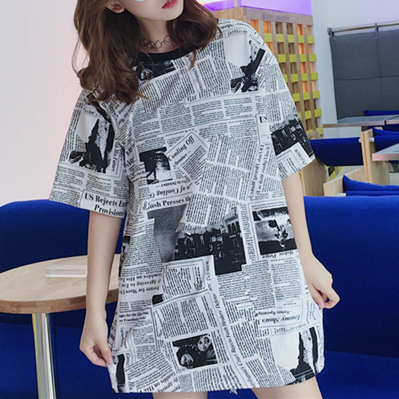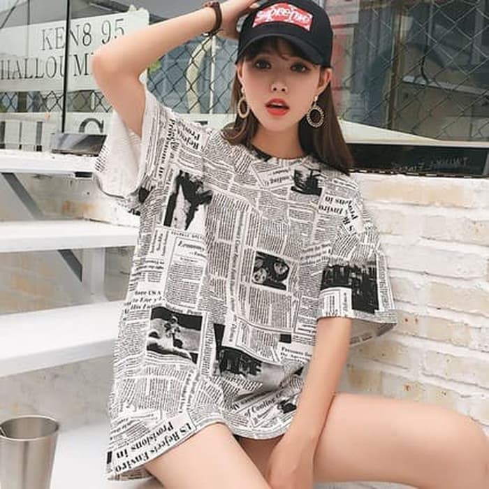 Kaos T-Shirt Lengan Pendek Model Longgar Casual dengan Motif Print Koran Atasan | Shopee Indonesia