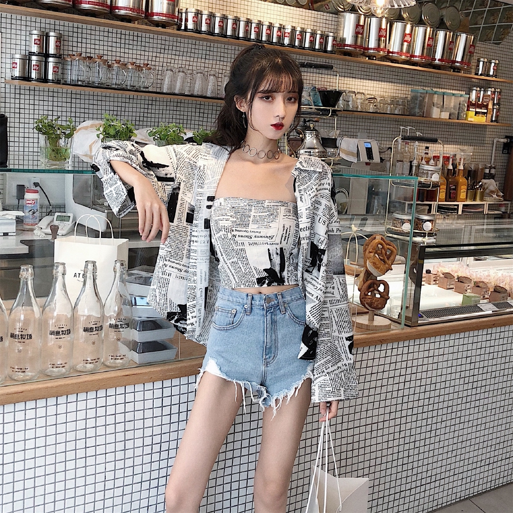 TERBARU-BAJU KEMEJA CEWEK LENGAN PANJANG RETRO MOTIF KORAN-RETRO MOTIF GAMBAR KORAN | Lazada Indonesia