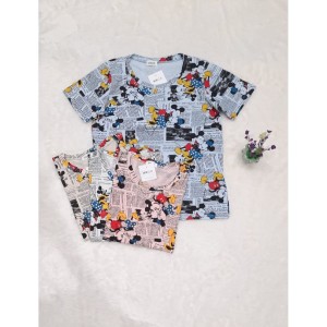 Set Atasan Motif Print Koran Kartun + Celana Panjang Semata Kaki | Shopee Indonesia