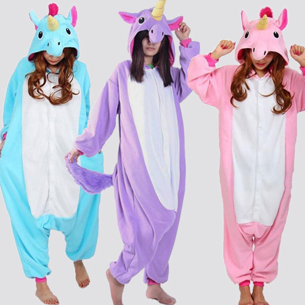 Wanita Kigurumi Pajamas Set Cosplay Unicorn Pria Unicornio Flanel Hooded Hewan Gambar Kartun Baju Tidur Piyama Anak| | - AliExpress