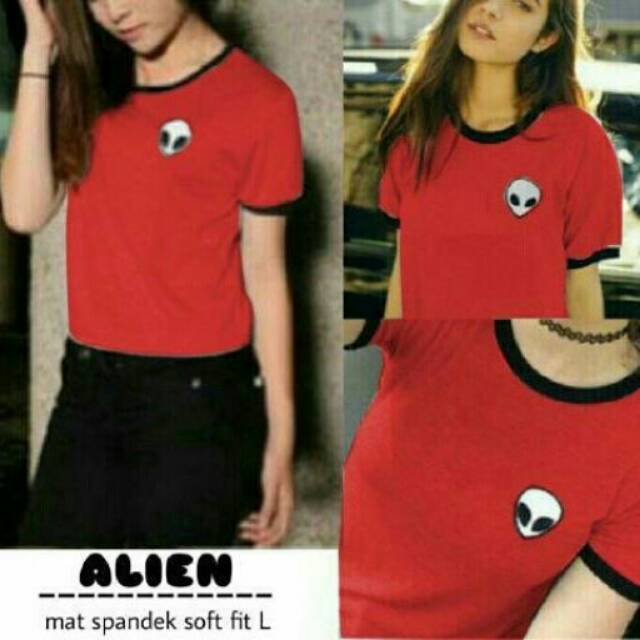 MS-ALIEN Tee Red/kaos gambar kartun alien lucu/baju polos merah/crop top murah/baju tumblr/v neck | Shopee Indonesia