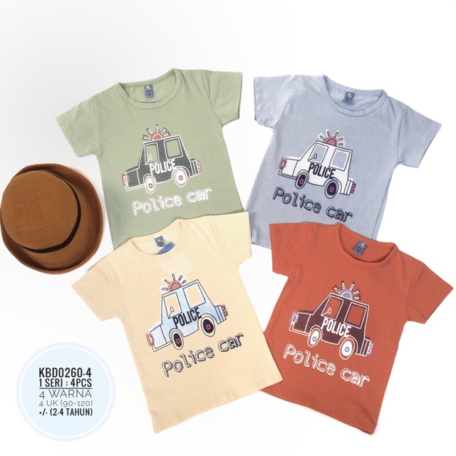 KBD 0260 -4 Baju Kaos Sablon gambar kartun mobil polisi Anak Cowok import korea 1234tahun | Shopee Indonesia