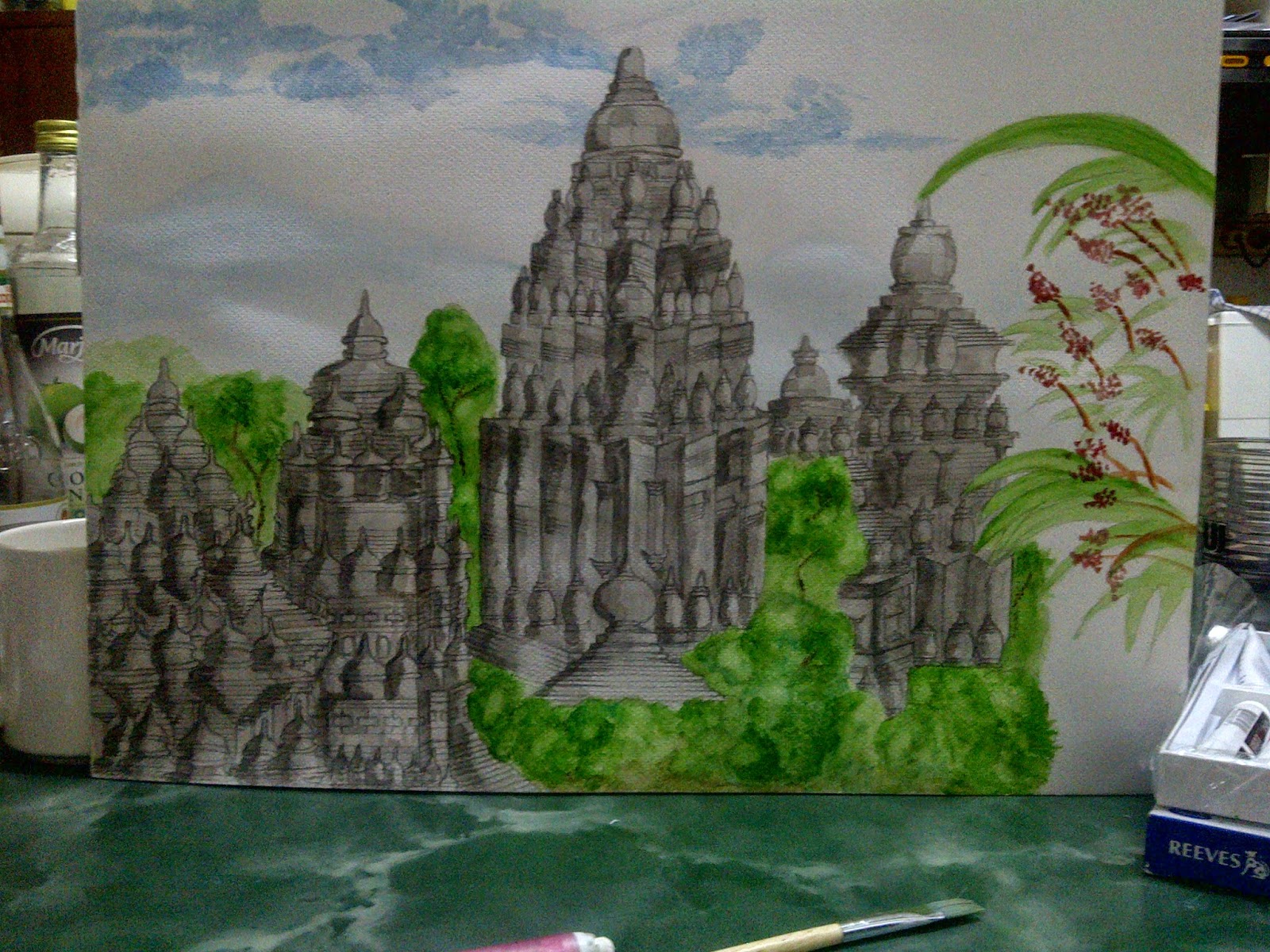 Watercolor : Candi Prambanan (Prambanan Temple) | Dapur Sketsa (Lois)