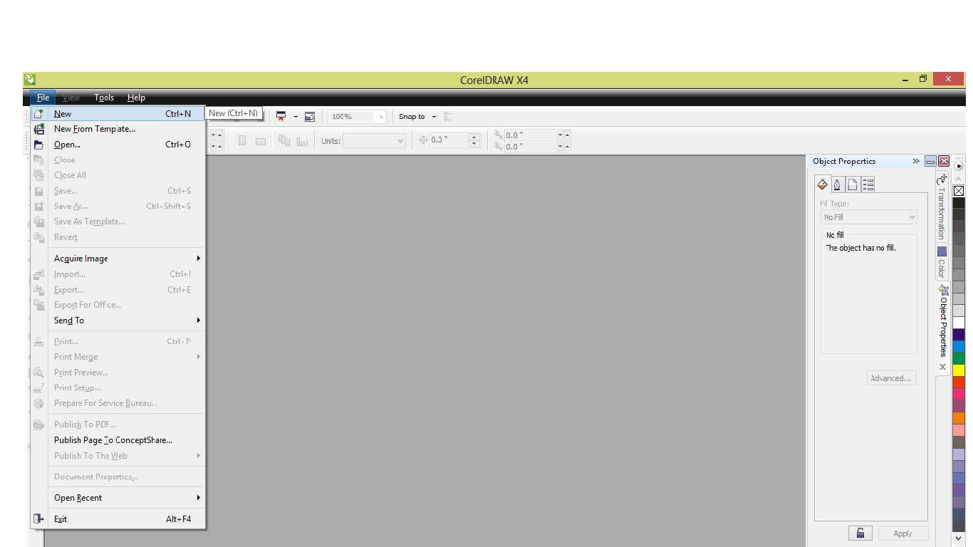 DESAIN LOGO DENGAN COREL LOGO APPLE Langkah-langkahnya : 1. Buka corel seperti biasanya lalau tekan Ctrl+N 2. Buat garis teg