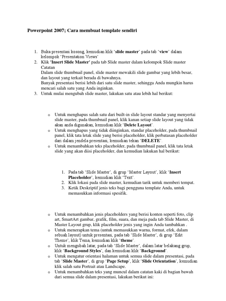 Powerpoint 2007; Cara membuat template sendiri: Placeholder’, kemudian klik ‘Text’