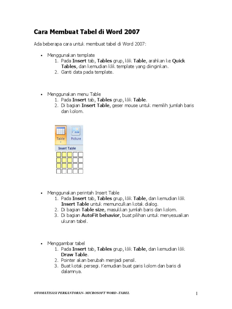 Cara Membuat Tabel Di Word 2007