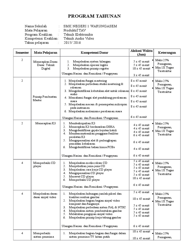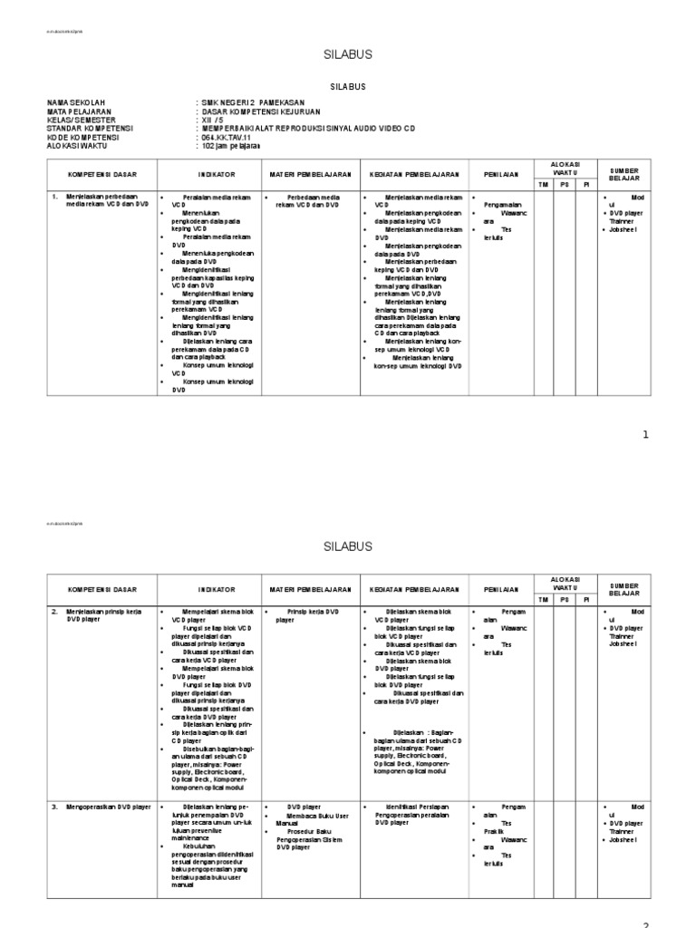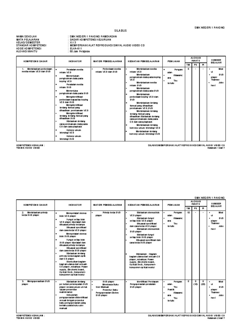 5. Silabus Memperbaiki Alat Reproduksi Sinyal Audio Video CD