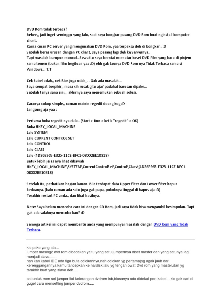 mengatasi DVD Rom Tidak Terbaca