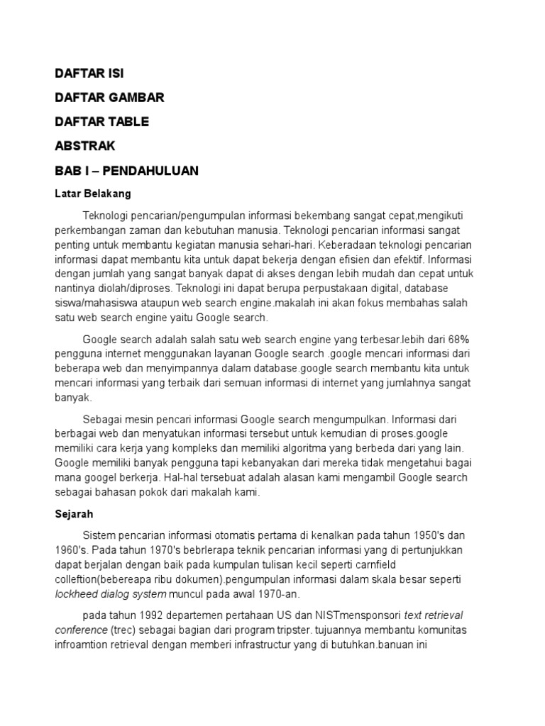 Daftar Isi Daftar Gambar Daftar Table Abstrak Bab I – Pendahuluan