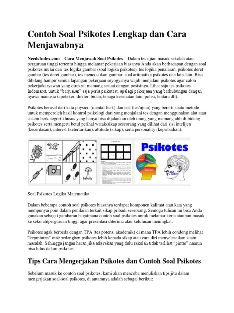 Contoh Soal Psikotes Dan Jawaban Terbaru - PDF Free Download