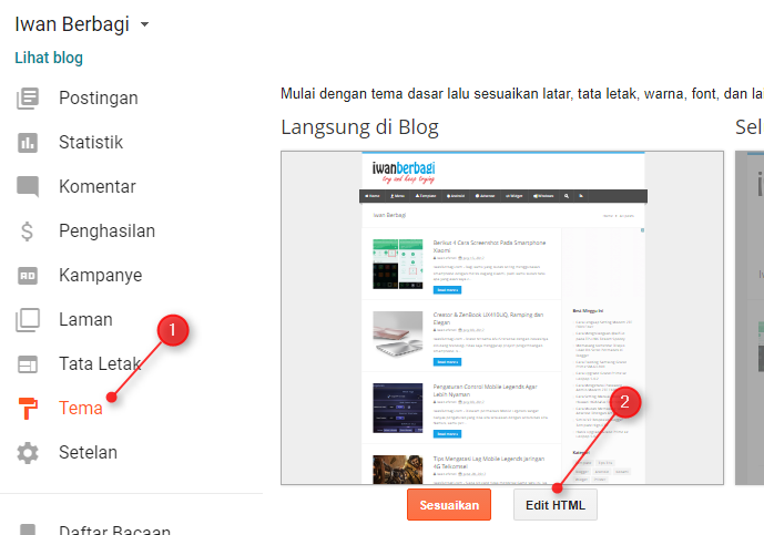 2 CARA MENGGANTI TEMPLATE (TEMA) BLOG DI BLOGSPOT
