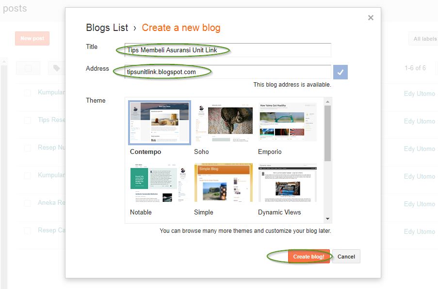 Cara Membuat Blog di Blogspot Lengkap Gambar