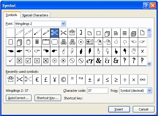 Memasukkan Simbol Gunting di Word 2007 | etanal