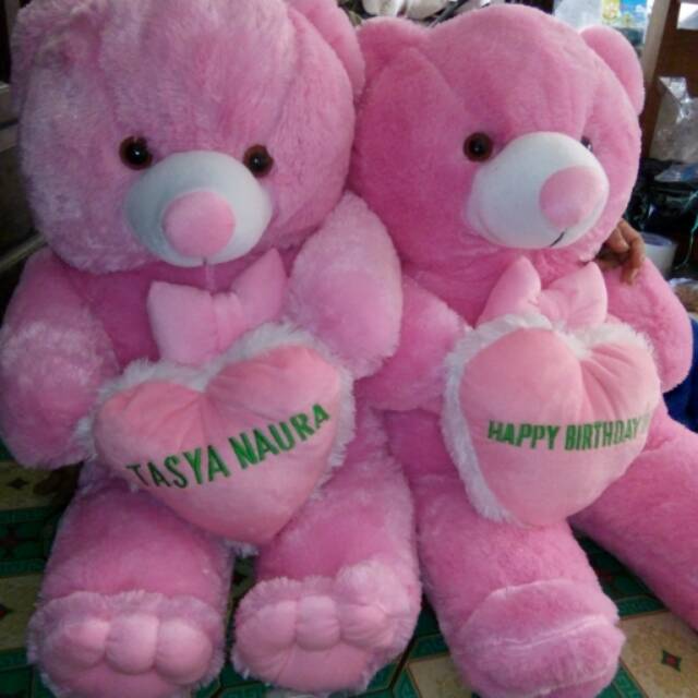 Boneka Beruang Lucu Pink + Bordir Love nama | Shopee Indonesia