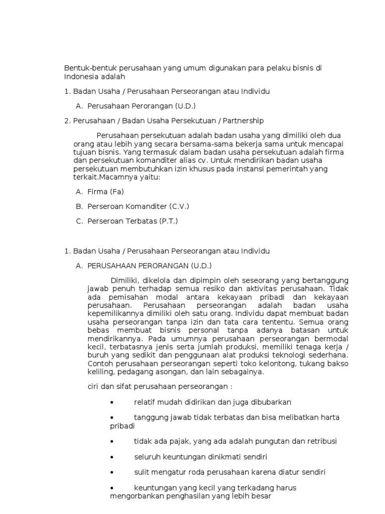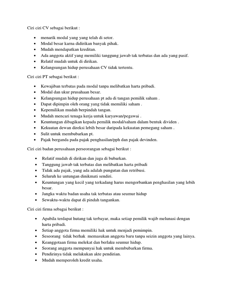DOC) PERBEDAAN PT, PP, CV, dan Firma | Nanda Dwi Haryanto - Academia.edu