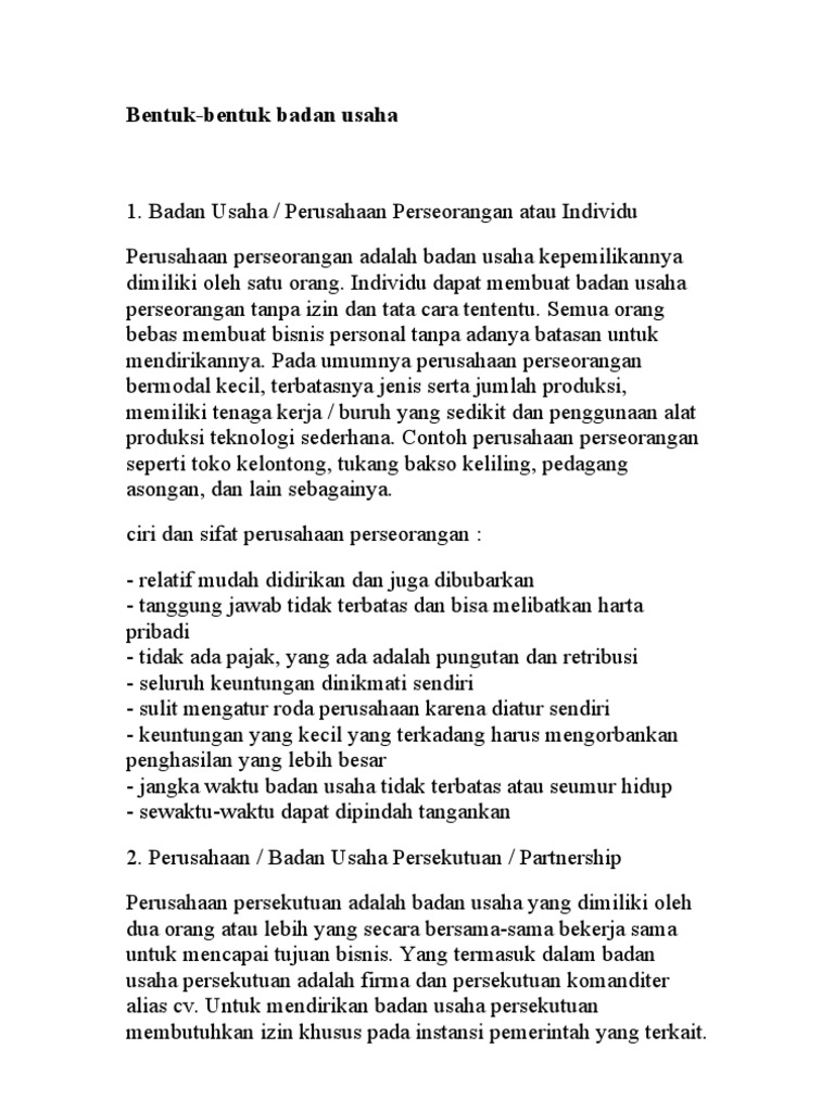 DOC) Ciri, kelebihan, & kekurangan badan usaha | risanto cahya - Academia.edu