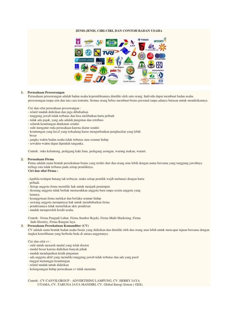 Pengertian Bentuk Badan Usaha | Jenis dan ciri cirinya | Buah Pikiran