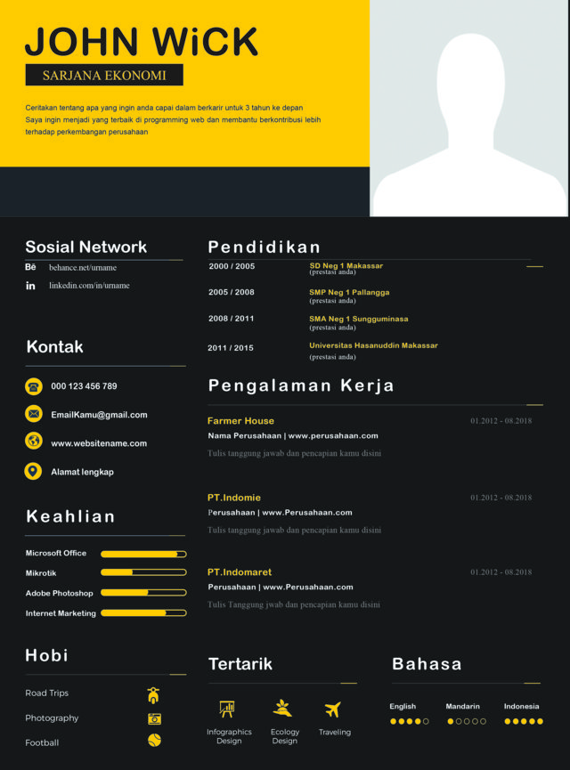 Cv Template Bahasa Indonesia - Resume Format | Creative cv template, Desain cv, Cv kreatif