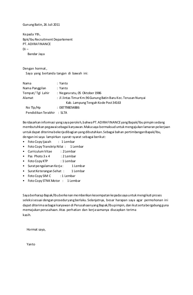 Contoh Surat Lamaran Kerja Di Pt Pegadaian - Contoh Seputar Surat