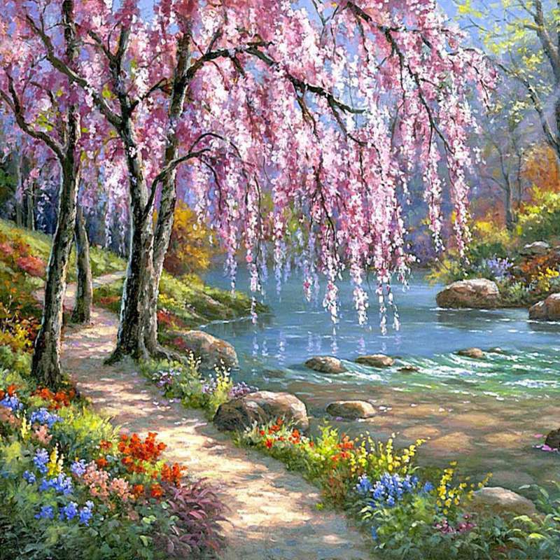 COD]Lukisan Cat Minyak DIY: Gambar Bunga Sakura Lukisan Tangan Media Kanvas Tanpa Bingkai | Shopee Indonesia