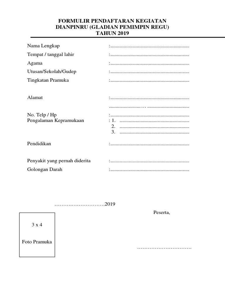 DOC) Contoh Formulir Pendaftaran Pesantren Ramadhan20190516 80420 cntpgs | Satrio Utama - Academia.edu