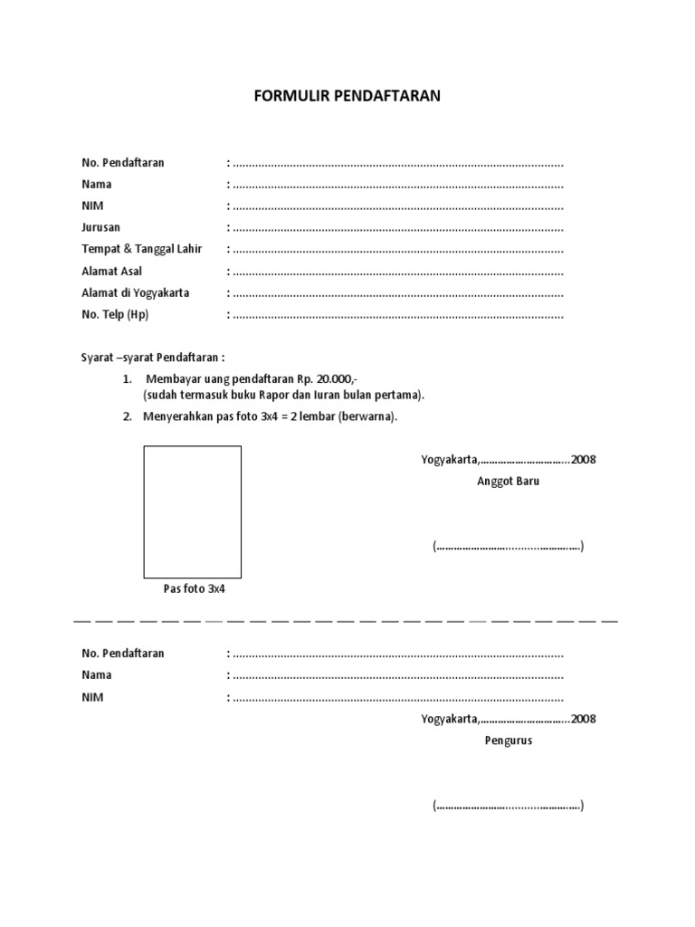 Contoh formulir pendaftaran