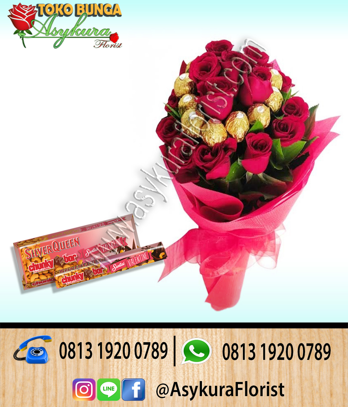 TOKO BUNGA CIBUBUR: HANDBOUQUET BUNGA DENGAN TAMBAHAN BONEKA DAN COKLAT