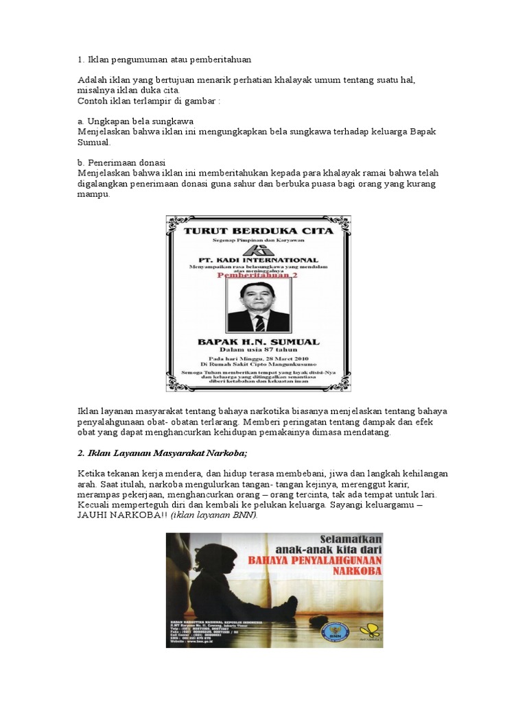 carilah masing-masing dua contoh iklan pemberitahuan, iklan layanan masyarakat, dan iklan - Brainly.co.id
