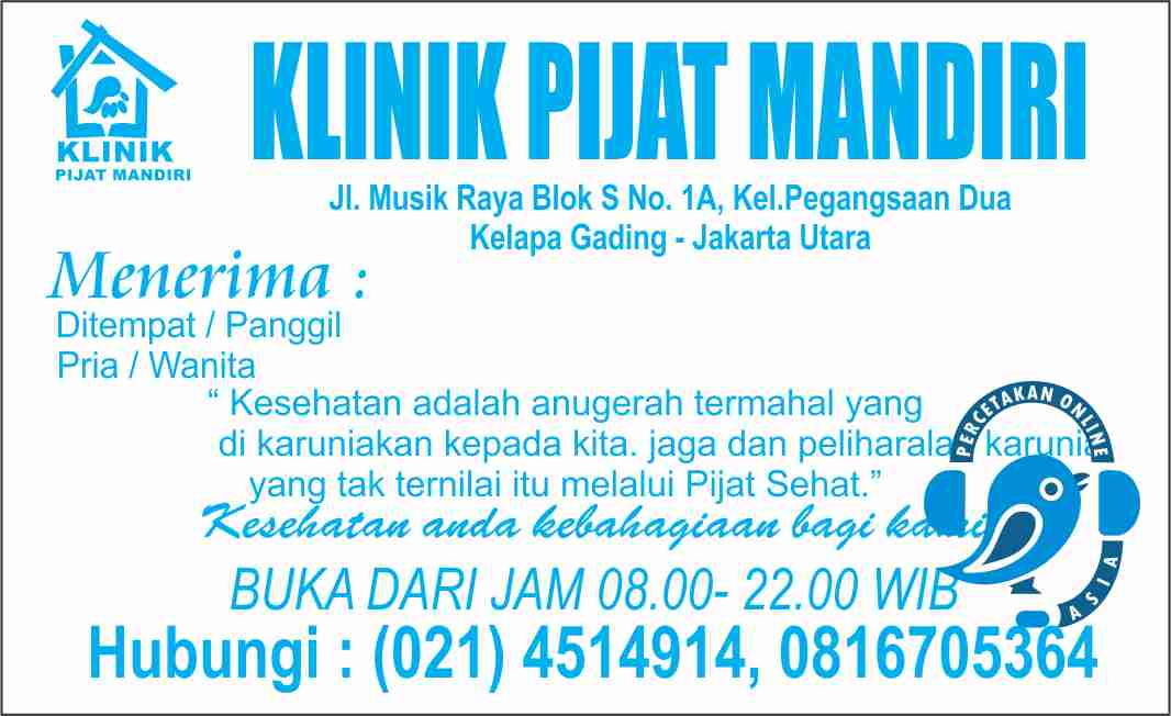 Contoh desain kartu nama Klinik Pijat Mandiri | PercetakanASIA.com