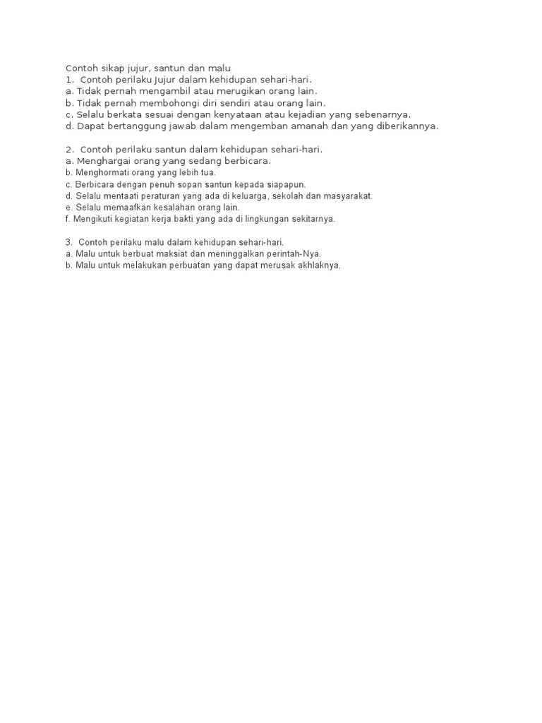 sebutkan 10 contoh perilaku jujur dalm kehidupan sehari hari baik di keluarga, sekolah, dan - Brainly.co.id