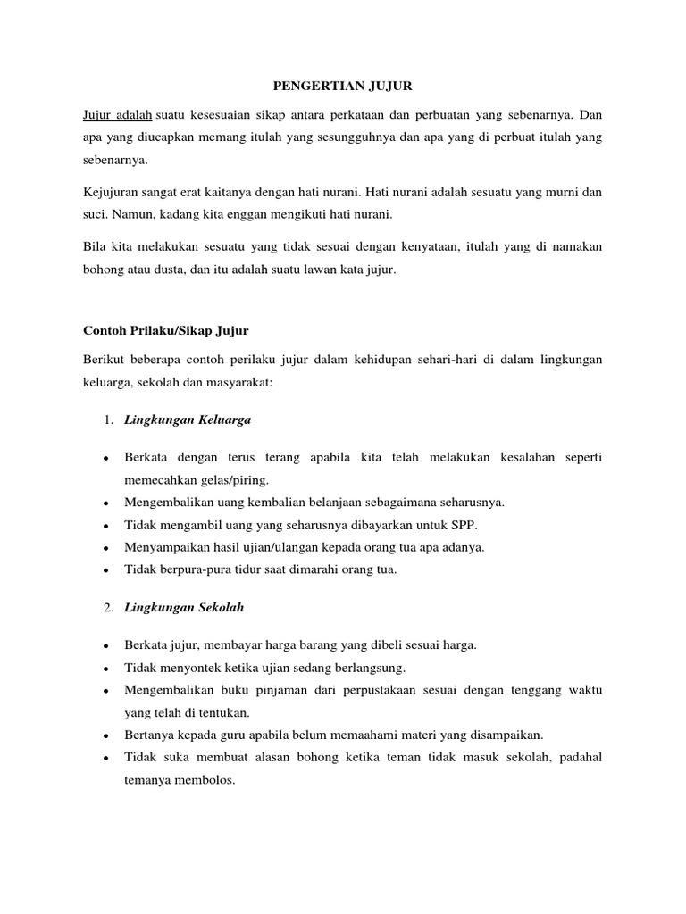 jelaskan pengertian jujur dan berikan contoh perilakunya dalam kehidupan sehari-hari.minimal 3.dan - Brainly.co.id