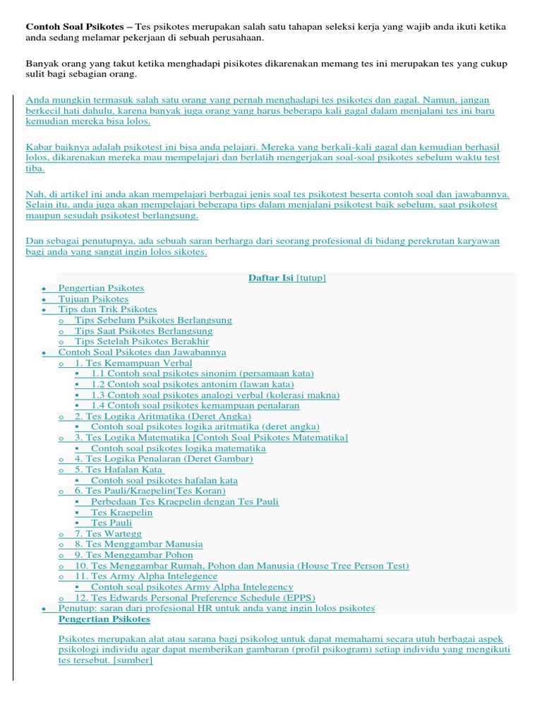 Contoh Soal Psikotes Calon Karyawan - nexusshara
