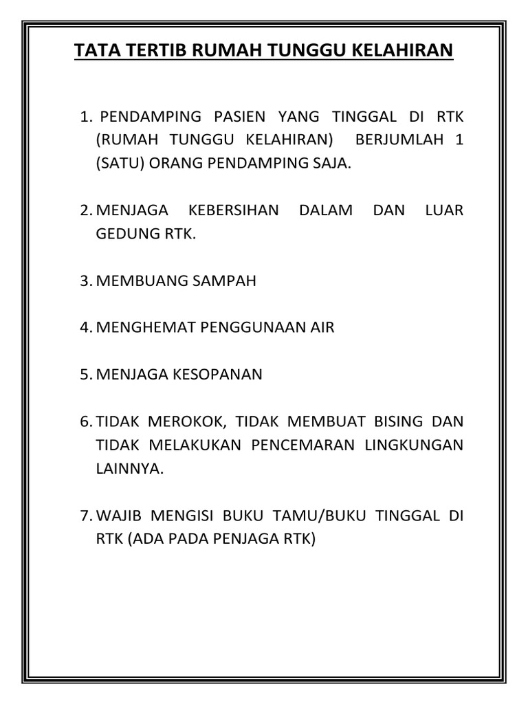 Contoh Tata Tertib Rumah Tunggu Kelahiran